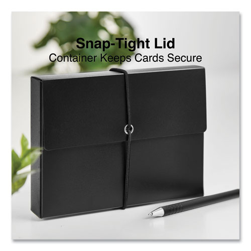 Product Details** Global Product Type Lift-Off Lid Index Card File Boxes Color(s) Black/Blue Material(s) Plastic For Card Size 4 x 6 Card Capacity 100 Card Holder Type Index Card Width 4″ Depth 1.33″ Height 6″ Product Biodegradability Indicator N Product Biodegradability in Days 0 Product Compostability Indicator N Package Includes Includes 100 index cards with poly dividers Pre-Consumer Recycled Content Percent 0% Post-Consumer Recycled Content Percent 0% Total Recycled Content Percent 0% Country Of Origin IN Carton Weight 14 lbs. Carton Pack Quantity 12 PK Pack Quantity 2 EA UPC 087547473054 UNSPSC 14111518 Shipping Weight & Item Dimensions Weight 1.07 lbs. Length 6 in Height 1.33 in Width 4 in Warranty Manufacturer’s limited one-year warranty.