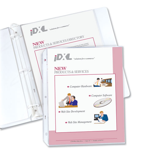 Product Details** Global Product Type Punched Ring Binder Sleeves Load Orientation Top Document Size Range Letter Grade Heavy-Duty Hole-Punch Details Side: 3-Hole Insert Size 8.5 x 11 Front Face Color Clear Front Face Material Polypropylene Backing Color Clear Backing Material Polypropylene Sheet Capacity 2 Product Biodegradability Indicator N Product Biodegradability in Days 0 Product Compostability Indicator N Pre-Consumer Recycled Content Percent 0% Post-Consumer Recycled Content Percent 0% Total Recycled Content Percent 0% Country Of Origin CN Carton Weight 25 lbs. Carton Pack Quantity 1000 EA Pack Quantity 0 UPC 038944620237 UNSPSC 44122002 Shipping Weight & Item Dimensions Weight 2.325 lbs. Length 11.875 in Height 1.813 in Width 9.5 in
