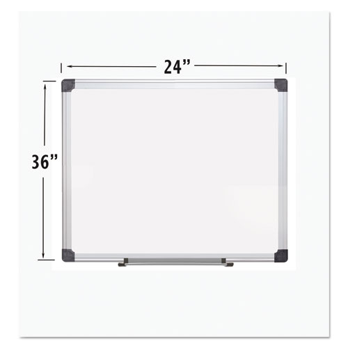 Product Details** Global Product Type Dry Erase Boards – Wall-Mount Board Surface Type(s) Dry Erase Magnetic Board Surface Yes Surface Material Porcelain Surface Color White Dedicated Projection Screen No Flipchart Mounting System No Supports Custom Surface Formatting No Frame Material Aluminum Frame Color/Finish Satin Board Width 24″ Board Depth 1″ Board Height 36″ Preformatted Board Surface No Mounting Details Four-Corner Horizontal/Vertical Wall-Mount System (Included) Product Biodegradability in Days 0 Package Includes Aluminum Tray,(4) Corner Mounting Kit,Instructions Compliance Standards ISO 9001-2008 Pre-Consumer Recycled Content Percent 0% Post-Consumer Recycled Content Percent 0% Total Recycled Content Percent 0% Country Of Origin PT Carton Weight 11 lbs. Carton Pack Quantity 1 EA Pack Quantity 0 UPC 560375054003 UNSPSC 44111907 Shipping Weight & Item Dimensions Weight 10.14 lbs. Length 40.16 in Height 0.79 in Width 24.41 in Warranty Manufacturer’s lifetime surface warranty.