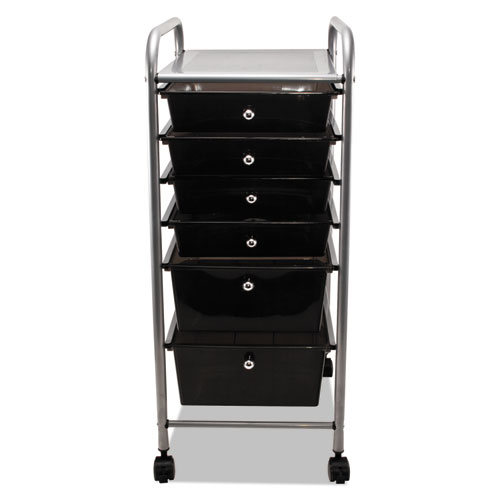 Product Details** Global Product Type Office/Machine Carts Overall Material Type Metal Color Family Gray Caster/Wheel Indicator Yes Number of Shelves 1 Number of Drawers 6 Bin Quantity 0 Material(s) Metal,Plastic Color(s) Matte Gray/Smoke Overall Width 13″ Overall Depth 15.38″ Height (Max) 32.13″ Number of Wheels 4 Wheel Type (2) Locking Swivel,(2) Non-Locking Swivel Handle Quantity 2 Shelf Type(s) Fixed Drawer Color(s) Smoke Drawer Width 10.25″ Drawer Depth 14.25″ Drawer Height Top to Fourth from Top: 2.75″,Fifth from Top & Bottom: 5.25″ Door Quantity 0 Compartment Handle(s) 3 Lock No Power Management Indicator No Compact Storage Indicator No Product Biodegradability Indicator N Product Biodegradability in Days 0 Product Compostability Indicator N Pre-Consumer Recycled Content Percent 0% Post-Consumer Recycled Content Percent 0% Total Recycled Content Percent 0% Special Features Six-Drawer Organizer—Features four small (10.25″ x 14.25″ x 2.75″) and two large (10.25″ x 14.25″ x 5.25″) drawers. Country Of Origin TW Carton Weight 12 lbs. Carton Pack Quantity 1 EA Pack Quantity 0 UPC 097099340056 UNSPSC 44111515 Shipping Weight & Item Dimensions Weight 12 lbs. Length 36.25 in Height 7.5 in Width 15.75 in Warranty Manufacturer’s limited 90-day warranty.