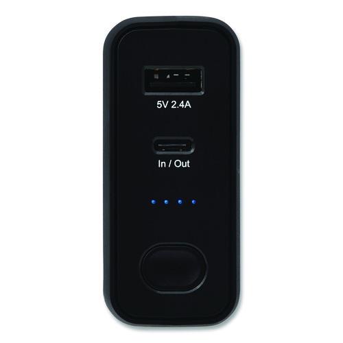 Small and lightweight, this high-capacity power bank dishes out 5,000 mAh of battery capacity for charging two mobile devices at the same time, including smartphones, tablets, e-readers, AirPods and handheld gaming devices. Lithium-ion lasts longer than lead-acid batteries, charges faster and saves you money in the end. Status LEDs let you know how much battery capacity is left. Portable power bank you can take with you to charge your devices at work, on the train, at a convention or at the airport. But it also features a NEMA 1-15P plug that connects to any standard power outlet. Plugging the power bank into an AC outlet turns it into an efficient wall charger that not only charges its own battery to full capacity, but charges up to two connected mobile devices as well. A USB-A port and a USB-C port provide a total of 5 V 2.4 A (when connected to an AC outlet) or 5 V 3 A (DC power) to charge your devices, including Android, Apple and Windows. Comprehensive safety features ensure worry-free charging of mobile devices. The power bank provides short circuit, over-voltage, over-current, over-charge and over-discharge protection. An ideal power solution when you’re on the road or stuck somewhere without convenient electricity, the portable battery charger fits comfortably in your purse, pocket or backpack to keep your phone, tablet, Kindle, AirPods or other mobile device operating when you need it. The NEMA 1-15P plug folds into the unit when not in use to shield it from damage and prevent it from snagging or scratching your bag’s contents.