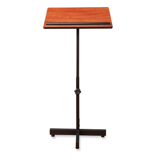 Product Details** Global Product Type Freestanding Lecterns Color Family Cherry Material(s) MDF Core HPL Laminate Overall Width 20″ Height (Max) 44″ Color(s) Cherry Caster/Glide/Wheel Glide Overall Depth 18.25″ Number of Shelves 0 Platform Dimensions 16″ x 20″ Product Biodegradability Indicator N Product Biodegradability in Days 0 Product Compostability Indicator N Compliance Standards MAS Certified Green Pre-Consumer Recycled Content Percent 0% Post-Consumer Recycled Content Percent 40% Total Recycled Content Percent 40% Country Of Origin CN Carton Weight 19 lbs. Carton Pack Quantity 1 EA Pack Quantity 0 UPC 604747270216 UNSPSC 45111501 Shipping Weight & Item Dimensions Weight 19 lbs. Length 30 in Height 2.5 in Width 22 in Warranty Manufacturer’s 10-year warranty.