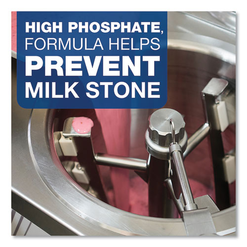 Powerful powdered product cleans and sanitizes milk shake and soft serve machines. High phosphate formula helps prevent the formation of milk stones. Variable dilution ratios allow you to tailor your mixture to fit the job. Contains 6.25% sodium dichloro-s-triazinetrione dihydrate.