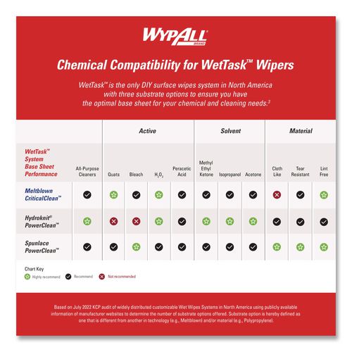 Product Details** Global Product Type Cleaner/Detergent Wet Wipes Towel/Wipe Type Cleaning/Disinfecting Wipes Material(s) Hydroknit Number of Towels/Wipes Per Container 95 Scent Unscented Color(s) White Applicable Material Multiple Length 12″ Width 6″ Product Packaging Roll For Use With WETTASK* Refillable Wet Wiping System Application General Purpose, Healthcare Product Biodegradability Indicator N Product Biodegradability in Days 0 Product Compostability Indicator N Package Includes (1) WETTASK Bucket,(6) Wiper Rolls Pre-Consumer Recycled Content Percent 0% Post-Consumer Recycled Content Percent 0% Total Recycled Content Percent 0% Special Features WETTASK System—Includes six rolls and one bucket. Country Of Origin US Carton Weight 8 lbs. Carton Pack Quantity 6 RL Pack Quantity 0 UPC 000000000000 UNSPSC 47131502 Shipping Weight & Item Dimensions Weight 7.61 lbs. Length 18.125 in Height 8.25 in Width 13.25 in