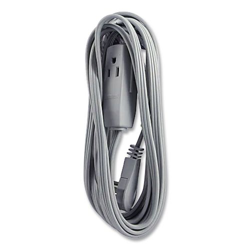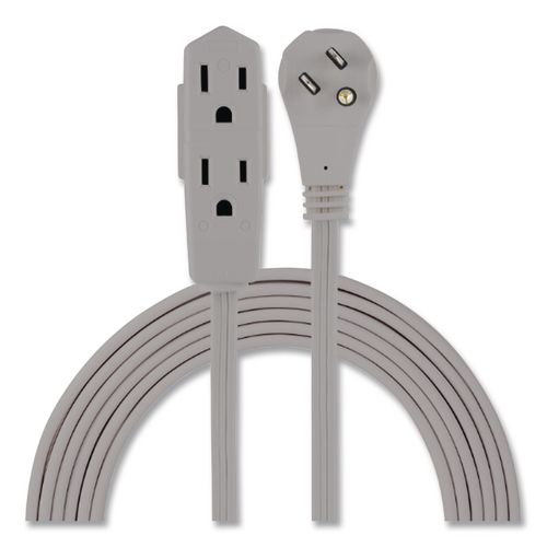 Enhance cafeterias and conference rooms with extra plugs by using this indoor cord. The three grounded outlets let you power multiple devices simultaneously, and the right-angle plug keeps the cord flush along the wall. The three-prong design helps reduce the need for adapters. Flat cord design secures easily to a wall with clips or tape.