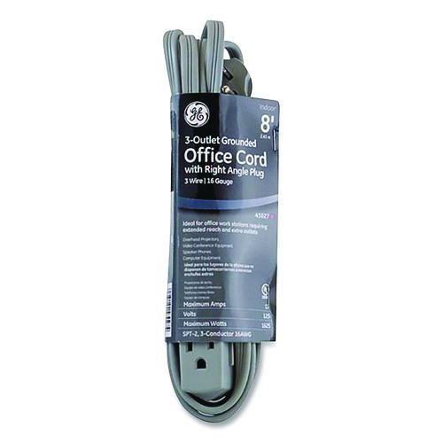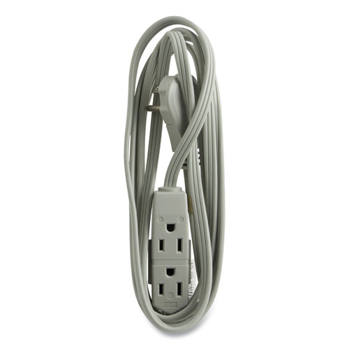 Enhance cafeterias and conference rooms with extra plugs by using this indoor cord. The three grounded outlets let you power multiple devices simultaneously, and the right-angle plug keeps the cord flush along the wall. The three-prong design helps reduce the need for adapters. Flat cord design secures easily to a wall with clips or tape.
