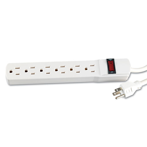 This six-outlet power strip extends the functionality of electrical outlets, and gives extra reach to electrical cords. Features three-prong outlets to handle AV or printer equipment, and a circuit-breaker switch for maximum energy conservation when accessories are not in use. Features three-prong plug. Maximum load on all six outlets not to exceed 15 amps.