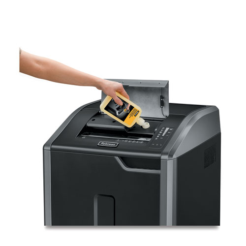 Provides high performance commercial shredding. The 100% Jam Proof System eliminates paper jams and powers through tough jobs. Auto-Oil™ automatically lubricates the cutters to enhance performance and extend shredder life. SafeSense® Technology stops shredding when hands touch the paper opening. Energy Savings System provides optimal energy efficiency 100% of the time—in use and out of use. Shreds 30 sheets per pass into 5/32″ x 1 1/8″ cross-cut particles (Security Level P-4) and also safely shreds staples, paper clips, plastic credit cards, CDs/DVDs and junk mail. It has a 30-gallon bin and features an extra wide 12″ paper entry. The continuous duty motor offers non-stop shredding for 10+ users.