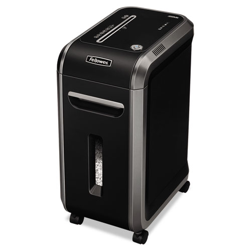 Provides ultimate protection with particles 10 times smaller than standard cross-cut. Auto Reverse stops and reverses paper if a jam occurs. SafeSense® Technology stops shredding when hands touch the paper opening. SilentShred™ offers ultra-quiet performance for shared workspaces. The energy saving Sleep Mode feature shuts down the shredder after 2 minutes of inactivity. The 99Ms holds over 80% more paper per gallon than standard cross-cut. Shreds 14 sheets per pass into 5/64” x 9/16” micro-cut particles (Security Level P-5), and has a 9-gallon pull-out bin. Maximum run time: 20 on/40 off. For 1-3 users.