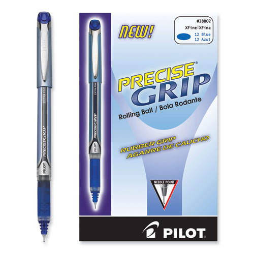 Product Details** Global Product Type Rollerball Pens Pen Style Stick Pen Tip Type Needle Pen Point Size Type Extra-Fine Color Family Blue Erasable Ink No Refillable No Pen Sub-Brand & Product Family Precise® Grip Pen Type Rollerball Pen Pen Point Size 0.5 mm Pen Ink Color(s) Blue Pen Barrel Color(s) Blue Pen Cap Color(s) Blue Airplane-Safe Ink No Special Ink Properties Smooth-Writing Ballpoint Ink Pen Grip Type Dimpled Rubber Visible Ink Supply No Pocket Clip Indicator Yes Product Biodegradability in Days 0 Pre-Consumer Recycled Content Percent 0% Post-Consumer Recycled Content Percent 0% Total Recycled Content Percent 0% Country Of Origin JP Carton Weight 7 lbs. Carton Pack Quantity 12 DZ Pack Quantity 0 UPC 072838288028 UNSPSC 44121701 Shipping Weight & Item Dimensions Weight 0.36 lbs. Length 5.5 in Height 1 in Width 3.5 in