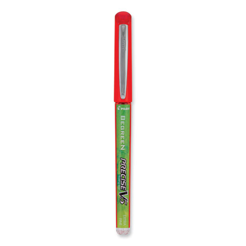 Product Details** Global Product Type Rollerball Pens Pen Style Stick Pen Tip Type Needle Pen Point Size Type Extra-Fine Color Family Red Erasable Ink No Refillable Yes Pen Sub-Brand & Product Family Precise® V5 BeGreen® Pen Type Rollerball Pen Pen Point Size 0.5 mm Pen Ink Color(s) Red Pen Barrel Color(s) Red Pen Cap Color(s) Red Airplane-Safe Ink No Pen Grip Type Smooth Visible Ink Supply No Pocket Clip Indicator Yes Product Biodegradability Indicator N Product Biodegradability in Days 0 Product Compostability Indicator N Pre-Consumer Recycled Content Percent 89% Post-Consumer Recycled Content Percent 0% Total Recycled Content Percent 89% Country Of Origin JP Carton Weight 4 lbs. Carton Pack Quantity 12 DZ Pack Quantity 0 UPC 072838263025 UNSPSC 44121701 Shipping Weight & Item Dimensions Weight 0.288 lbs. Length 2.81 in Height 5.5 in Width 1.06 in