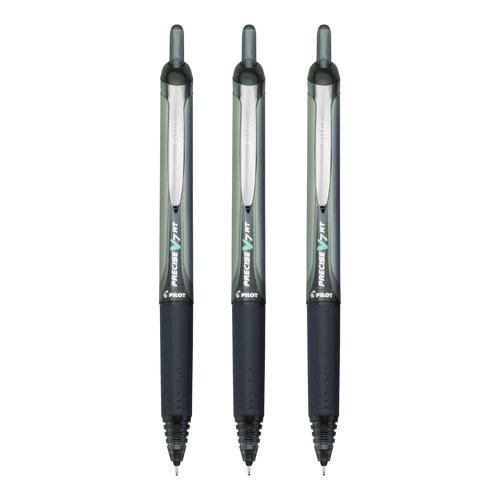 Product Details** Global Product Type Rollerball Pens Pen Style Retractable Pen Tip Type Needle Pen Point Size Type Fine Color Family Black Erasable Ink No Refillable Yes Pen Sub-Brand & Product Family Precise® V7RT Pen Type Rollerball Pen Pen Point Size 0.7 mm Pen Ink Color(s) Black Pen Barrel Color(s) Black Airplane-Safe Ink No Pen Grip Type Dimpled Rubber Visible Ink Supply No Pocket Clip Indicator Yes Product Biodegradability Indicator N Product Biodegradability in Days 0 Product Compostability Indicator N Pre-Consumer Recycled Content Percent 0% Post-Consumer Recycled Content Percent 0% Total Recycled Content Percent 0% Country Of Origin JP Carton Weight 1 lbs. Carton Pack Quantity 48 PK Pack Quantity 3 EA UPC 072838260581 UNSPSC 44121701 Shipping Weight & Item Dimensions Weight 1 lbs. Length 1 in Height 1 in Width 1 in