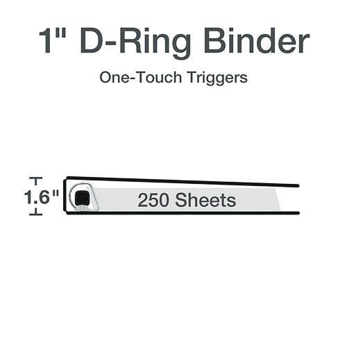 Product Details** Global Product Type Ring Binders Binder Style View Number of Rings 3 Binder Size Capacity 1″ Ring Style Slant D-Ring Color Family White Binder Sheet Size 11 x 8.5 Binder Type Ring Binder Sheet Capacity 250 Binder Color(s) White Ring Mounting Back Cover Material(s) Polypropylene Binder Pocket Description (1) Front Cover Pocket,(1) Back Cover Pocket Insert Description Front,Spine,Back Front Cover Insert Size 8.5 x 11 Spine Insert Size 1 x 11.5 Back Cover Insert Size 8.5 x 11 Product Biodegradability Indicator N Product Biodegradability in Days 0 Product Compostability Indicator N Green Information Paper contains 10% post-consumer recycled content. Country Of Origin MX Carton Weight 15 lbs. Carton Pack Quantity 12 EA Pack Quantity 0 UPC 083086103001 UNSPSC 44122003 Shipping Weight & Item Dimensions Weight 0.965 lbs. Length 11 in Height 2.1 in Width 10.1 in