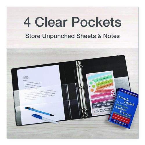 • Four organization-friendly pockets and non-stick ClearVue™ covers for three-sided customization.