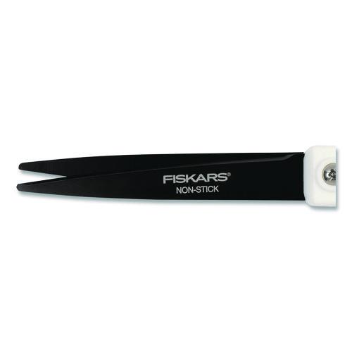 Fiskars® Premier SoftGrip Nonstick 8″ Scissors are ideal for cutting a wide variety of materials including denim, silk and multiple layers of fabric. They feature a non-stick blade coating that makes it easy to cut cleanly through materials with sticky adhesives like tape or glue. The high-grade, precision-ground, stainless-steel blades offer a lasting sharp edge that cuts all the way to the tip. The ergonomic handle is sculpted to fit your hand, maximizing cutting control and sensitivity, while a bent handle design keeps material flat for mistake-free cutting.