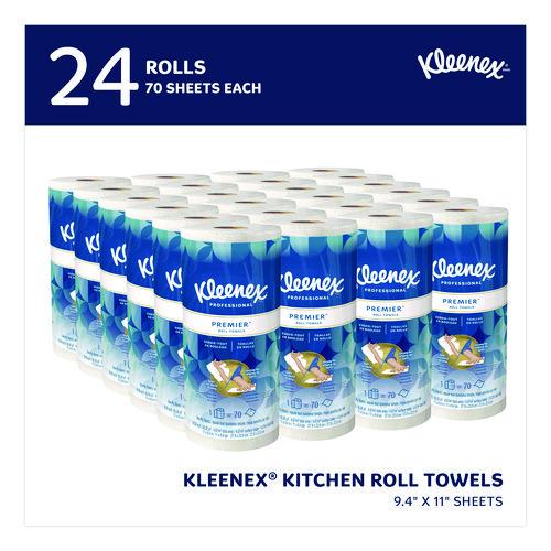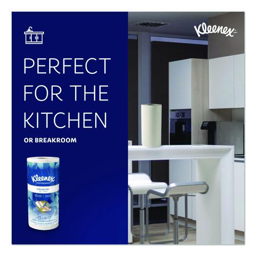 Upgrade with Kleenex Premiere Kitchen Paper Towels. They have a premium, cloth-like feel and have the strength for scrubbing and wiping up spills. Even though these premium kitchen towels are tough on cleaning tasks, the cloth-like material is soft on your skin. Each sheet is designed for tear resistance, absorbency and durability. They’re soft enough to use at home (or for a home business!), but strong enough for commercial uses.