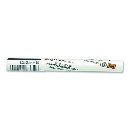 Product Details** Global Product Type Mechanical Pencil Lead Refills Pencil Lead Format Tube Lead Diameter 0.5 mm Lead Degree (Hardness) HB Lead Color Black Includes Erasers (Yes/No) No Lead Refill Compatibility Most Refillable Automatic Pencils,Pentel® Mechanical Pencils Product Biodegradability Indicator N Product Biodegradability in Days 0 Product Compostability Indicator N Pre-Consumer Recycled Content Percent 0% Post-Consumer Recycled Content Percent 0% Total Recycled Content Percent 0% Country Of Origin JP Carton Weight 2 lbs. Carton Pack Quantity 144 PK Pack Quantity 12 EA UPC 072512074596 UNSPSC 44121902 Shipping Weight & Item Dimensions Weight 0.005 lbs. Length 2.867 in Height 0.307 in Width 0.4 in Warranty Manufacturer’s limited lifetime warranty.