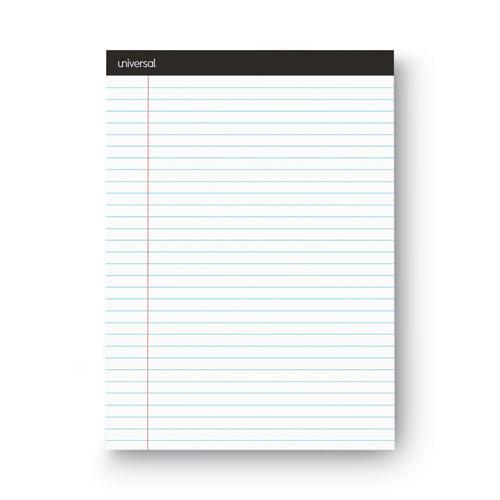 Heavyweight bright white paper with red margin rule is perforated for easy removal. Tasteful black head strip provides a professional appearance. Sturdy heavy-duty back offers support while writing away from a desk.