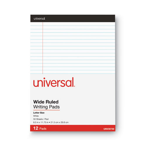 Premium Ruled Writing Pads with Heavy-Duty Back, Wide/Legal Rule, Black Headband, 50 White 8.5 x 11 Sheets, 12/PackPremium Ruled Writing Pads with Heavy-Duty Back, Wide/Legal Rule, Black Headband, 50 White 8.5 x 11 Sheets, 12/Pack