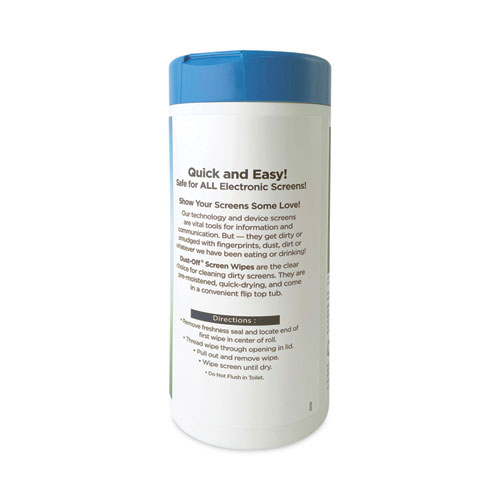 Show your screens some love! Dust-Off Screen wipes are a great way to keep your home and office screens clean. These, soft, thick pre-moistened wipes are safe for all screens large and small including smart phones, tablets, navigation screens, and smart watches. Also, great for laptops and monitors. Features a great citrus scent. Wipes stay fresh with the easy open/close lid.