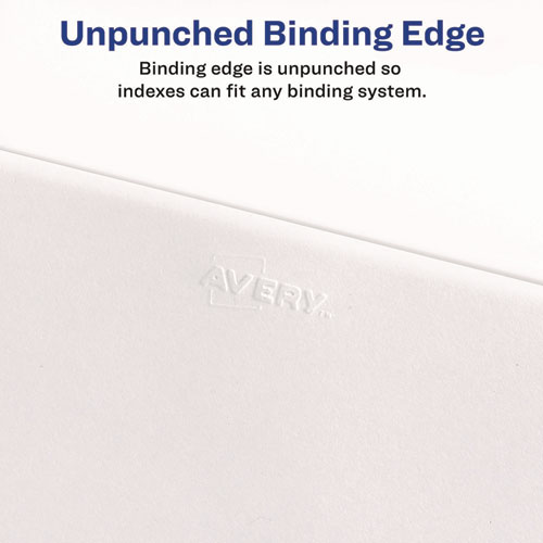 Product Details** Global Product Type Printed Exhibit Numeric Index Dividers Index Divider Style Legal Arabic Numeric Tab Orientation Side Tab Tab Style 1/25-Cut Color Family White Punched/Unpunched Unpunched Index Divider Size 11 x 8.5 For Use With Comb Binding Systems Index Divider Material(s) Heavyweight Ledger Paper Index Divider Color(s) White Tab Material(s) Heavyweight Ledger Paper Tab Color(s) White Legal Tab Style Avery® Style Tab Title(s) 7 Tab Title Color(s) Black Index Divider Form Quantity 25/Pack Product Biodegradability Indicator N Product Biodegradability in Days 0 Product Compostability Indicator N Pre-Consumer Recycled Content Percent 0% Post-Consumer Recycled Content Percent 0% Total Recycled Content Percent 0% Special Features Individual Number, 11 x 8.5, Side Tab Country Of Origin MX Carton Weight 9 lbs. Carton Pack Quantity 20 PK Pack Quantity 25 EA UPC 072782119171 UNSPSC 44122010 Shipping Weight & Item Dimensions Weight 0.418 lbs. Length 11 in Height 0.3 in Width 9 in