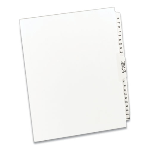 Product Details** Global Product Type Printed Exhibit Numeric Index Dividers Index Divider Style Legal Arabic Numeric Tab Orientation Side Tab Tab Style 26-Tab Color Family White Punched/Unpunched Unpunched Index Divider Size 11 x 8.5 For Use With Comb Binding Systems Index Divider Material(s) Heavyweight Ledger Paper Index Divider Color(s) White Tab Material(s) Heavyweight Ledger Paper Tab Color(s) White Legal Tab Style Avery Style Tab Title(s) 76 to 100 Tab Title Color(s) Black Index Divider Form Quantity 1 Set Product Biodegradability Indicator N Product Biodegradability in Days 0 Product Compostability Indicator N Green Information PVC-free. Pre-Consumer Recycled Content Percent 0% Post-Consumer Recycled Content Percent 0% Total Recycled Content Percent 0% Footnote 1 Includes Table of Contents Special Features Collated, 11 x 8.5, Side Tab Country Of Origin MX Carton Weight 6 lbs. Carton Pack Quantity 12 ST Pack Quantity 26 EA UPC 072782113971 UNSPSC 44122010 Shipping Weight & Item Dimensions Weight 0.426 lbs. Length 11 in Height 0.2 in Width 9 in