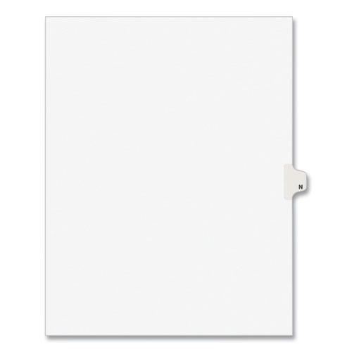 Product Details** Global Product Type Printed Exhibit Alpha Index Dividers Index Divider Style Legal Alpha Tab Orientation Side Tab Tab Style 26-Tab Color Family White Punched/Unpunched Unpunched Index Divider Size 11 x 8.5 For Use With Comb Binding Systems Index Divider Material(s) Heavyweight Ledger Paper Index Divider Color(s) White Tab Material(s) Heavyweight Ledger Paper Tab Color(s) White Legal Tab Style Avery® Style Tab Title(s) N Tab Title Color(s) Black Index Divider Form Quantity 25/Pack Product Biodegradability Indicator N Product Biodegradability in Days 0 Product Compostability Indicator N Green Information PVC-free. Pre-Consumer Recycled Content Percent 0% Post-Consumer Recycled Content Percent 0% Total Recycled Content Percent 0% Special Features Individual Letter, 11 x 8.5, Side Tab Country Of Origin MX Carton Weight 9 lbs. Carton Pack Quantity 20 PK Pack Quantity 25 EA UPC 072782014148 UNSPSC 44122008 Shipping Weight & Item Dimensions Weight 0.421 lbs. Length 11.06 in Height 0.19 in Width 9.06 in