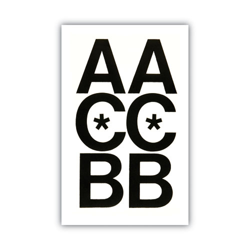 Product Details** Global Product Type Adhesive Characters Character Types Letters Character Mounting Type Self-Adhesive Color Family Black Material Type Plastic Character Style Helvetica Uppercase Number of Pieces 50 Character Color Black Material(s) Vinyl Height 3″ Product Biodegradability Indicator N Product Biodegradability in Days 0 Product Compostability Indicator N Pre-Consumer Recycled Content Percent 0% Post-Consumer Recycled Content Percent 0% Total Recycled Content Percent 0% Special Features Self-Adhesive Uppercase Letters Country Of Origin US Carton Weight 3 lbs. Carton Pack Quantity 12 PK Pack Quantity 50 EA UPC 014173118844 UNSPSC 44111801 Shipping Weight & Item Dimensions Weight 0.213 lbs. Length 10.6 in Height 0.3 in Width 6 in