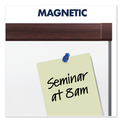 Product Details** Global Product Type Dry Erase Boards – Wall-Mount Board Surface Type(s) Dry Erase Magnetic Board Surface Yes Surface Use Rating Heavy/Frequent Use Surface Material DuraMax Porcelain Surface Color White Dedicated Projection Screen No Flipchart Mounting System No Supports Custom Surface Formatting No Frame Material Medium Density Fiberboard (MDF),Plastic Frame Color/Finish Mahogany Finished Board Width 48″ Board Height 36″ Preformatted Board Surface No Mounting Details Pass-Through Wall-Mount Hardware (Included) Product Biodegradability in Days 0 Green Information Certified for material content and sustainable manufacturing processes. Package Includes (4) Dry Erase Markers,Mounting Kit Compliance Standards Cradle to Cradle Certified™ Silver Pre-Consumer Recycled Content Percent 0% Post-Consumer Recycled Content Percent 0% Total Recycled Content Percent 0% Country Of Origin US Carton Weight 26 lbs. Carton Pack Quantity 1 EA Pack Quantity 0 UPC 034138201480 UNSPSC 44111905 Shipping Weight & Item Dimensions Weight 25.9 lbs. Length 52 in Height 1.94 in Width 38.13 in Warranty Manufacturer’s limited lifetime warranty.