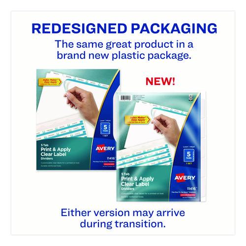 Print and Apply Index Maker Clear Label Dividers with Printable Label Strip and White Tabs, 5-Tab, 11 x 8.5, White, 1 SetPrint and Apply Index Maker Clear Label Dividers with Printable Label Strip and White Tabs, 5-Tab, 11 x 8.5, White, 1 Set