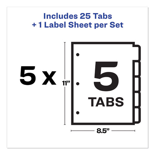 Product Details** Global Product Type Customizable Index Dividers Index Divider Style Customizable Tab Orientation Side Tab Tab Style 5-Tab Color Family Clear Punched/Unpunched 3-Hole Punched Index Divider Size 11 x 8.5 For Use With Ring Binders Index Divider Material(s) Plastic Index Divider Color(s) Translucent Tab Material(s) Plastic Tab Color(s) Assorted Tab Color Assortment Brown,Gray,Light Green,Orange,Red Machine Compatibility Inkjet Printers,Laser Printers Index Divider Form Quantity 5 Sets Product Biodegradability Indicator N Product Biodegradability in Days 0 Product Compostability Indicator N Pre-Consumer Recycled Content Percent 0% Post-Consumer Recycled Content Percent 0% Total Recycled Content Percent 0% Country Of Origin US Carton Weight 6 lbs. Carton Pack Quantity 5 PK Pack Quantity 5 ST UPC 072782124526 UNSPSC 44122010 Shipping Weight & Item Dimensions Weight 1.33 lbs. Length 11 in Height 0.5 in Width 9 in