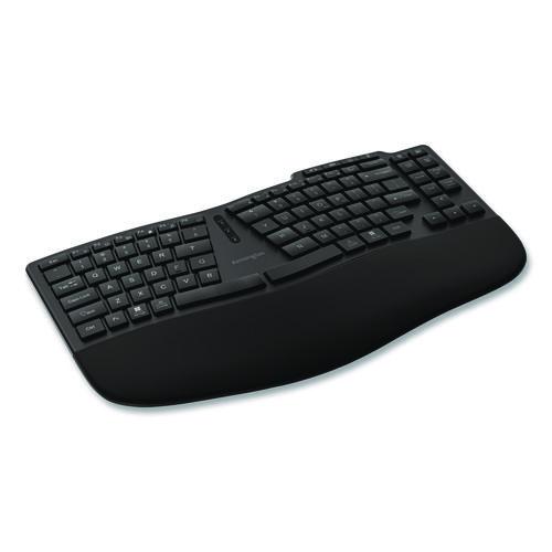 Sculpted for comfort and performance. Designed to support modern workstations, the Pro Fit® Ergo KB675 EQ TKL Rechargeable Keyboard elevates your typing experience with style, comfort, and performance. The sculpted ergonomic design provides all-day comfort by supporting proper hand and wrist posture, and the curved key layout enhances productivity by accommodating the natural contour of your hands. Swift Pair Technology simplifies device connections, supporting two Bluetooth® connections and a 2.4 GHz connection with 128-bit AES government-grade encryption security. Windows and macOS compatible, the keyboard includes optional Kensington Konnect™ software for additional productivity-enhancing customization options.