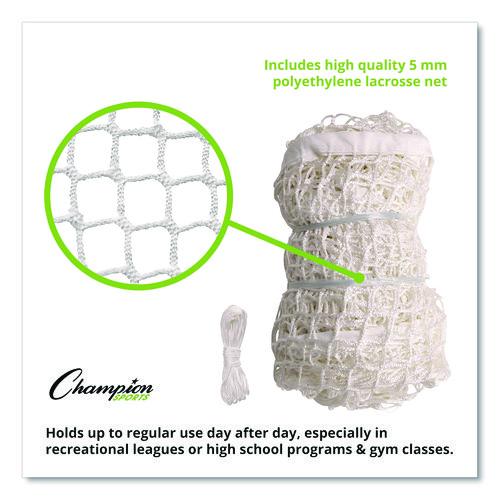 Made with high-quality steel tubing, the Champion Sports Pro High School Lacrosse Goal is an official size lacrosse net designed for high school and recreational programs. Featuring individually welded lacing rails, this lacrosse goal is easy to set up for games or gym classes and convenient to take apart and transport. As well, it includes a high quality 5 mm white net that is sure to hold up to hard shots game after game.