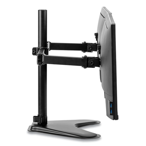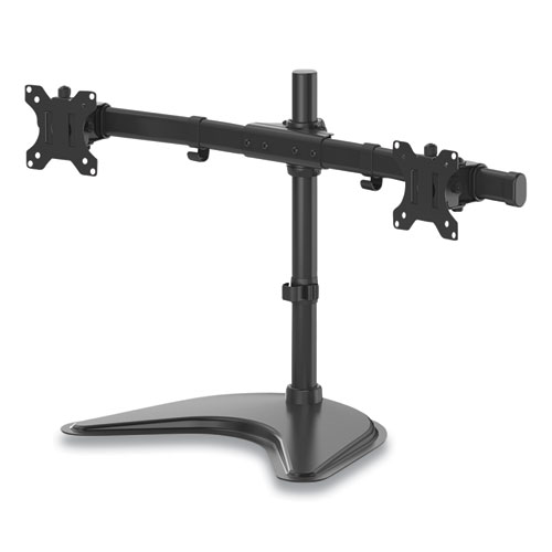 Free-standing design allows dual monitors to be used in spaces that do not allow a clamp or grommet mount. Create a multi-display productive workspace and position your monitors to reduce eye, neck and shoulder strain. The low profile, and weighted base provides enhanced stability. Minimize clutter with the intuitive cord management system. Holds 30″ monitors up to 17 lbs. Meets VESA mounting standards.