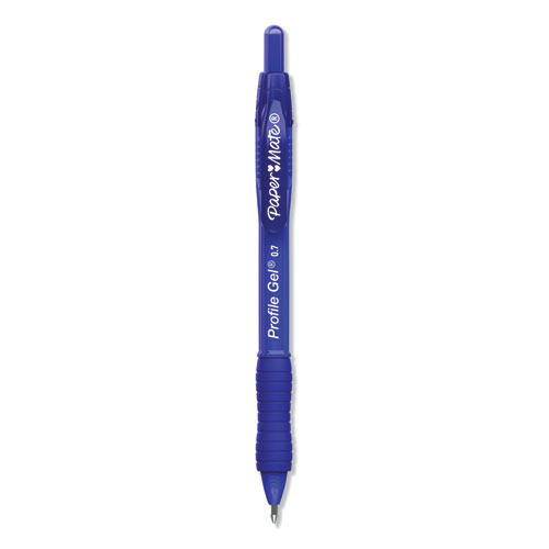 Product Details** Global Product Type Gel Pens Pen Style Retractable Pen Tip Type Conical Pen Point Size Type Medium Color Family Blue Erasable Ink No Refillable No Pen Sub-Brand & Product Family Profile Pen Type Gel Pen Pen Point Size 0.7 mm Pen Ink Color(s) Blue Pen Barrel Color(s) Translucent Blue Low-Viscosity Ink No Special Ink Properties Water-Based Gel Pen Grip Type Comfort Visible Ink Supply Yes Pocket Clip Indicator Yes Product Biodegradability Indicator N Product Biodegradability in Days 0 Product Compostability Indicator N Compliance Standards Box Tops for Education Pre-Consumer Recycled Content Percent 0% Post-Consumer Recycled Content Percent 0% Total Recycled Content Percent 0% Country Of Origin US Carton Weight 4 lbs. Carton Pack Quantity 12 DZ Pack Quantity 0 UPC 041540012467 UNSPSC 60121524 Shipping Weight & Item Dimensions Weight 0.26 lbs. Length 6.25 in Height 1.125 in Width 3.125 in