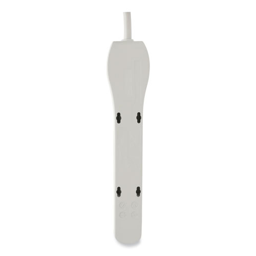 Product Details** Global Product Type Surge Protectors Number of Outlets 6 AC Joules Of Surge Protection 180 J Connected Equipment Guarantee/Warranty $2,500 Cord Length 2 ft Color(s) Light Gray Protection Type Power Diagnostics/Alarm/Status Light LED Response Time 1 ns Housing Material Plastic Width 1.5″ Depth 1.5″ Height 9.5″ Product Biodegradability in Days 0 Compliance Standards Conforms to UL 1363 Standards,Conforms to UL 1449 Standards,cUL Approved,RoHS Compliant Pre-Consumer Recycled Content Percent 0% Post-Consumer Recycled Content Percent 0% Total Recycled Content Percent 0% Country Of Origin VN Carton Weight 15 lbs. Carton Pack Quantity 20 EA Pack Quantity 0 UPC 037332095404 UNSPSC 39121610 Shipping Weight & Item Dimensions Weight 0.58 lbs. Length 2.3 in Height 11 in Width 3.2 in Warranty Manufacturer’s limited lifetime warranty.