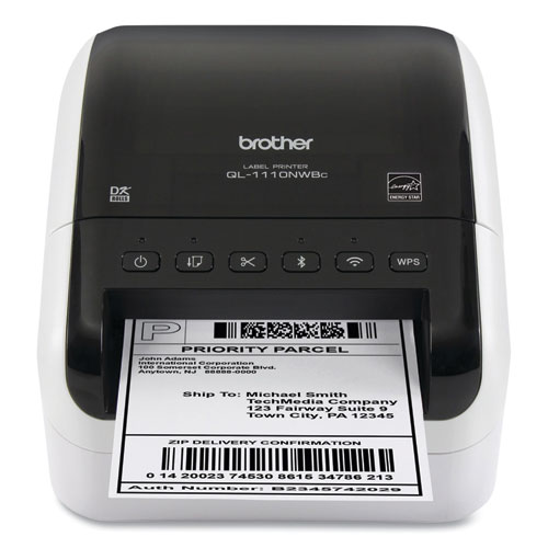 The Brother QL-1110NWBC is a high-speed label printer engineered with flexible connectivity options — Bluetooth® wireless technology, Ethernet and Wireless (802.11b/g/n) interfaces. This business-quality label printer lets you create cost-effective up to 4 wide paper labels for packages, envelopes, postage and more. The automatic crop function lets on-line sellers easily print product and other barcode labels from A4/Letter size label sheet templates (Windows® only). The Brother QL-1110NWBC delivers fast printing up to 69 standard address labels per minute with black text at 300 dpi. Auto cutter allows for printing one or multiple labels at a time helping eliminate wasted label sheets.