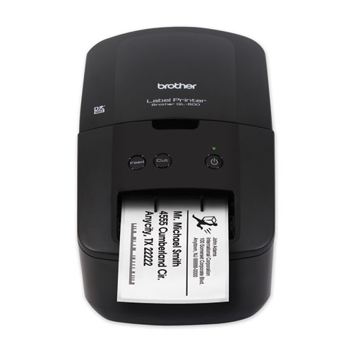 The QL-600 Label Printer never needs ink or toner and offers an economical way to print paper or film labels up to 2.4″ wide for your home, home office or small office. The automatic cutter lets you create custom-sized labels for almost any labeling task. Connects to both PC and Mac® computers with the included USB cable. It can print up to 44 labels/minute with high-resolution printing of up to 300 x 600 dpi-perfect for barcodes, images and logos. The Brother QL-600 is ideal for creating professional mailing and shipping labels, small signage and banners up to 3 ft long.