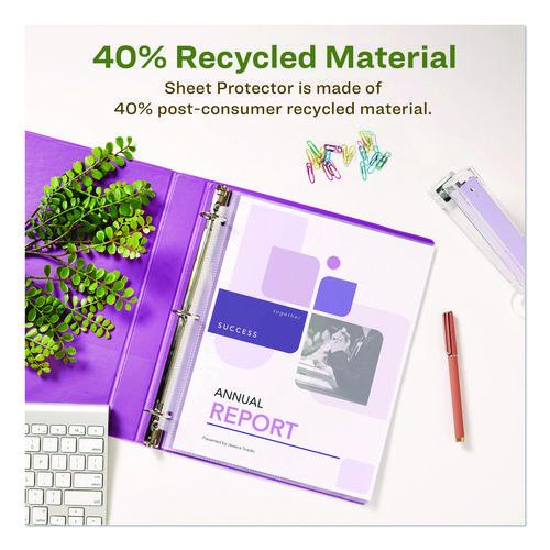 Ensure that your important papers last as long as you need them. Economy Recycled Sheet Protectors provide your documents with quality protection that allows you to view your papers with impressive clarity. The acid-free and archival-safe material won’t stick to your papers, so print stays on your documents rather than clinging to the plastic covering. With these convenient sheet protectors, preserve the look and condition of your papers.