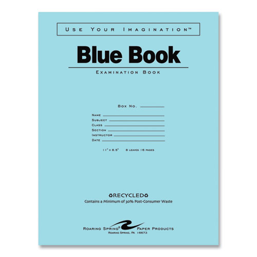Product Details** Global Product Type Exam Books Pocket Sized No Book-Binding Type Stapled Color Family Blue Number of Subjects/Sections 1 Sheet Size (Bound-Side First) 11 x 8.5 Sheet Rule/Format Type Wide/Legal Rule Book-Binding Edge Side Cover Color Blue Book-Spine Length 11″ Book Width 8.5″ Front-Cover Material 50 lb Offset Weight Paper Sheets per Book/Journal 8 Sheet Color White Sheet Ruling Size 11/32″ Sheet-Ruling Color Blue Sheet Basis Weight (lb) 15 lb Bond Dated No Product Biodegradability Indicator N Product Biodegradability in Days 0 Product Compostability Indicator N Green Information Cover contains 30% recycled content,paper contains 30% post-consumer waste. Pre-Consumer Recycled Content Percent 0% Post-Consumer Recycled Content Percent 0% Total Recycled Content Percent 0% Country Of Origin US Carton Weight 41 lbs. Carton Pack Quantity 500 EA Pack Quantity 0 UPC 000000000000 UNSPSC 60101722 Shipping Weight & Item Dimensions Weight 40.75 lbs. Length 17.5 in Height 8.75 in Width 11.25 in