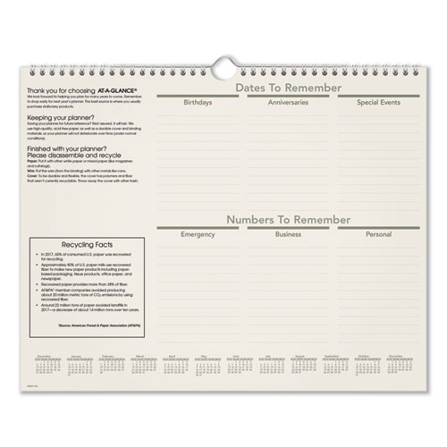 Recycled Wall Calendar, Unruled Blocks, 15 x 12, Sand/Green Sheets, 12-Month (Jan to Dec): 2026