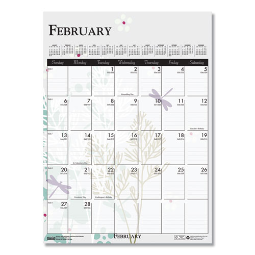 Product Details** Global Product Type Wall Calendars Dated Yes Academic Year No Calendar Format Monthly Edition Year 2025 Calendar Term 12-Month (Jan to Dec) Binding Type Wire-O Color Family White Refillable No Calendar Spread Format One Month per Page Julian Dates Yes Size (Bound-Side First) 12 x 16.5 Binding Details Twin-Wire Page Theme Wild Flowers Artwork Calendar Reference Blocks Current Year Separate Sections Notes/Memos Sheet Color(s) White/Multicolor Hanger Style Wire Loop Reversible No Seasonal Availability Yes Product Biodegradability Indicator N Product Biodegradability in Days 0 Product Compostability Indicator N Green Information Printed with soy-based inks. Pre-Consumer Recycled Content Percent 0% Post-Consumer Recycled Content Percent 100% Total Recycled Content Percent 100% Disclaimer Statement This product was made using wood sourced from a certified managed forest. Country Of Origin US Carton Weight 11 lbs. Carton Pack Quantity 24 EA Pack Quantity 0 UPC 040983346368 UNSPSC 44112002 Shipping Weight & Item Dimensions Weight 0.426 lbs. Length 16.5 in Height 0.2 in Width 12 in