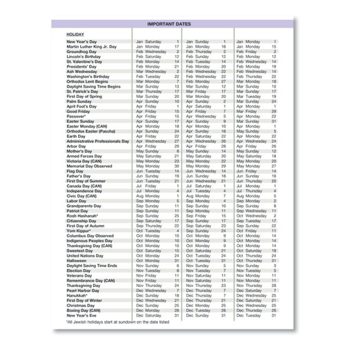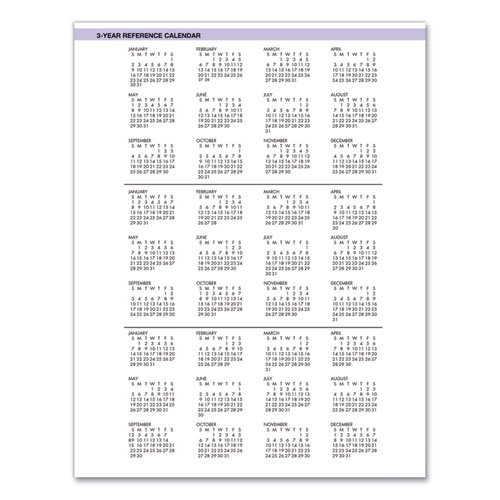 • Additional page with important holiday dates for three years in list form as well as, three-year calendar reference page for long-range planning.