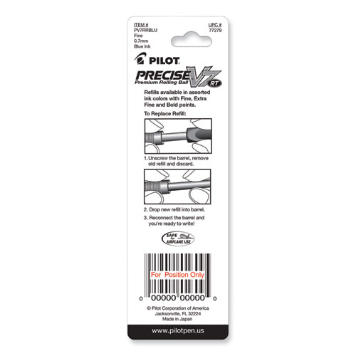 Refill for Pilot Precise V7 RT Rolling Ball, Fine Conical Tip, Blue Ink, 2/Pack
