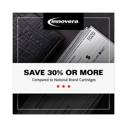Specifically formulated for check printing, Innovera® MICR toner cartridges provide businesses with the quality they require and the value they need. They meet all US and Canadian banking standards for signal strength. By using a special high-adhesion toner formula, designed specifically for your printer, these MICR toner cartridges can significantly reduce the possibility of costly fees stemming from rejected checks.