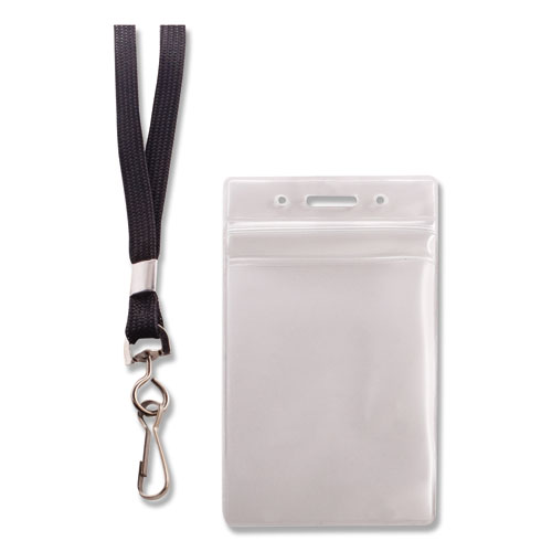 Product Details** Global Product Type Lanyard Card Holder Kits Orientation Vertical Name Badge Holder Material(s) Cotton,Metal,Vinyl Name Badge Holder Length 5″ Name Badge Holder Width 3.68″ Name Badge Holder Color(s) Transparent Frost Load Orientation Top Cord Length 36″ Name Badge Label Length 3.75″ Name Badge Label Width 2.38″ Product Biodegradability Indicator N Product Biodegradability in Days 0 Product Compostability Indicator N Package Includes (20) 36″ Long Black Cotton Lanyards Pre-Consumer Recycled Content Percent 0% Post-Consumer Recycled Content Percent 0% Total Recycled Content Percent 0% Special Features Lanyard Combo Pack—Included 36″ long, black cotton lanyard features a swivel-style J-hook for attaching to the badge holder. Country Of Origin CN Carton Weight 5 lbs. Carton Pack Quantity 10 PK Pack Quantity 20 EA UPC 000000000000 UNSPSC 55121503 Shipping Weight & Item Dimensions Weight 0.957 lbs. Length 6 in Height 3.5 in Width 6 in Warranty Manufacturer’s 90-day warranty.