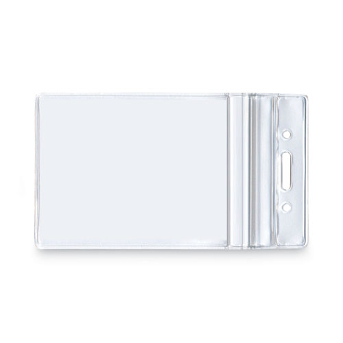 Ensure your credentials remain safe and secure with these Resealable ID Badge Holders. Lightweight, compact design features durable vinyl construction and a seal-top closure to fully protect your security badge on all sides. When sealed, the holder protects your badge from just about everything: water, oil, grease, soil, dust and more. Simply insert your badge and seal the holder as you would seal a resealable sandwich bag. Fully transparent face keeps your ID visible. Die-cut slot and two pre-punched circular holes accommodate lanyards, chains, clips, and badge reels, making it easy to keep your ID with you, no matter where you go. Lanyards, chains, clips and badge reels all sold separately unless otherwise noted.