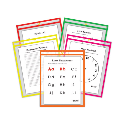 Product Details** Global Product Type Dry Erase Activity Sleeves Load Orientation Top Document Size Range Letter Border Color(s) Assorted Neon Grade Super Heavy-Duty Hanger Style Metal Grommet Insert Size 9 x 12 Front Face Color Clear Front Face Material Plastic Backing Color Clear Backing Material Plastic Color Assortment Neon Green,Neon Orange,Neon Pink,Neon Red,Neon Yellow Product Biodegradability Indicator N Product Biodegradability in Days 0 Product Compostability Indicator N Pre-Consumer Recycled Content Percent 0% Post-Consumer Recycled Content Percent 0% Total Recycled Content Percent 0% Country Of Origin CN Carton Weight 16 lbs. Carton Pack Quantity 125 EA Pack Quantity 0 UPC 038944408200 UNSPSC 44111905 Shipping Weight & Item Dimensions Weight 2.938 lbs. Length 14.5 in Height 2.375 in Width 11 in