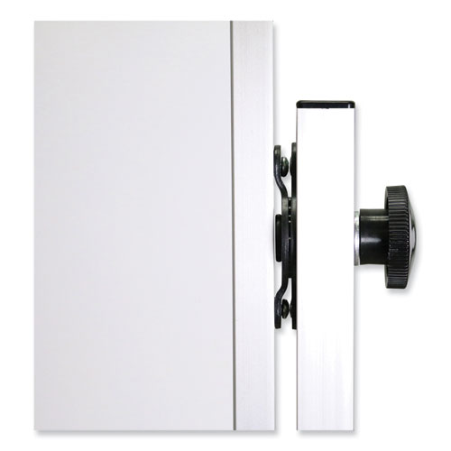 Constructed for strength and durability, Ghent’s Reversible Magnetic Porcelain Whiteboard with aluminum frame and stand is a versatile mobile communication tool for a range of environments. The scratch- and dent-resistant porcelain-on-steel surface ensures that your dry erase board never absorbs ink, eliminating the possibility of staining and ghosting; and as the surface is magnetic, you can also incorporate magnetic clips, characters and a variety of board accessories to accomplish any number of display and instructional goals. The reversing mechanism simplifies flipping from one surface to the other, and the strong steel positioning locks clamp-down securely, allowing you to set the surface fully vertical or to any angle in-between. Robust aluminum frame and stand deliver reliable performance, and the stand’s leg braces provide extra stability. Twin-wheel swivel casters keep you mobile; and by making use of the two locking casters, you can keep the board in place where you intend to use it. Ships to you in Ghent’s worry-free packaging, which is designed specifically for keeping mobile dry erase boards safe during shipping.