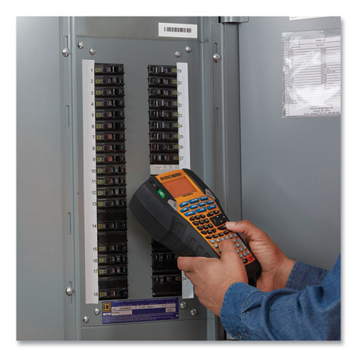 Prints labels for industrial sites. Label panels, blocks, wire and cable flags, horizontal and vertical warps, as well as vertical and fixed length applications and more. Hot keys automatically format text and spacing. Rhino Connect software lets you create barcodes and complex label layouts on a PC and print on-site.